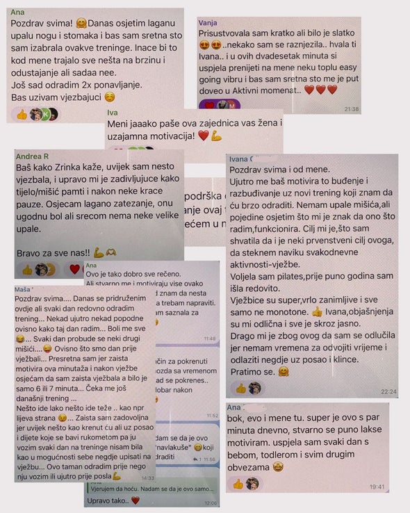 Tjelovježbe su u trajanju do max 20 minuta. Osim tjelovježbi dobit ćeš dva zadatka i pristup Telegram grupi za povezivanje sa drugim članicama.